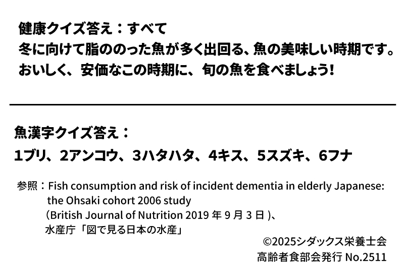 魚でいきいき元気に!良質なたんぱく質やビタミンD豊富な魚の魅力と、認知症リスク低下の報告もご紹介 。手軽な調理法や缶詰の活用、簡単レシピ「しらす干しと海苔のチーズトースト」も掲載!健康クイズや魚漢字クイズに挑戦!